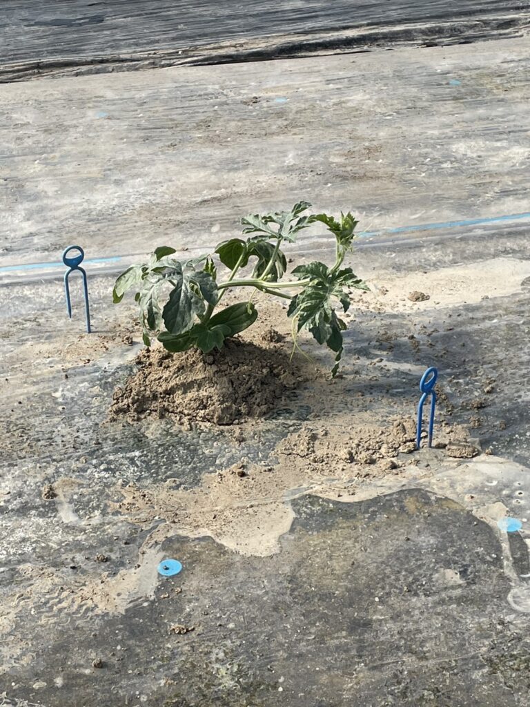特にスイカ畑の排水性(穴を深めに掘っておくこと)を良くすることで、雨水がスイカに直接浸からないように配慮しています。